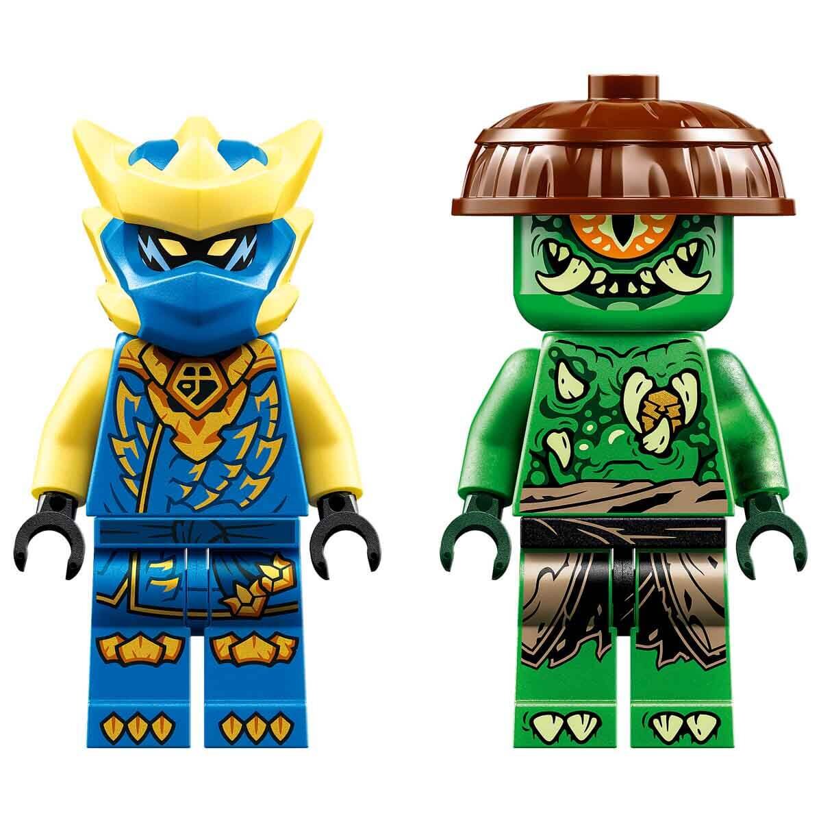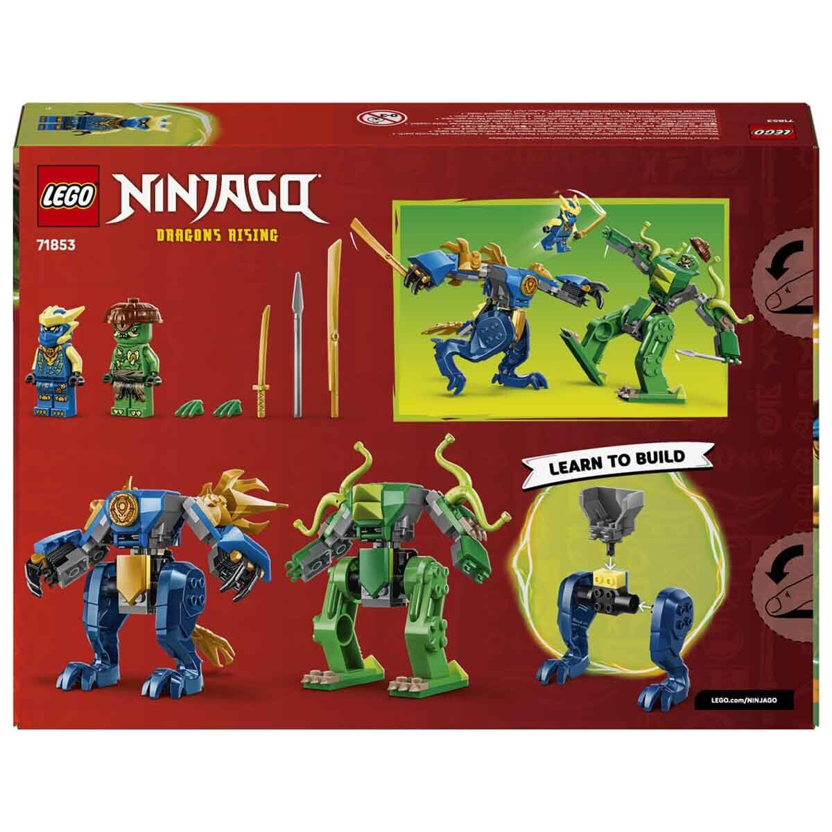 LEGO NINJAGO Jay’in Ejderha Robotu Savaşı (71853) macera oyuncağı, 2 robot ve 2 mini figür içerir. Jay'in ejderha robotunun bir mini figürlük kokpiti açılır ve kuyruğu, kanatları, kolları, bacakları, gövdesi ve parmakları ayarlanabilir; Mutasyon Canavarı'nın savaş robotunun ise mini figürü için açılabilir bir kokpiti ve ayarlanabilir dokunaçları, kolları, bacakları ve gövdesi vardır.
