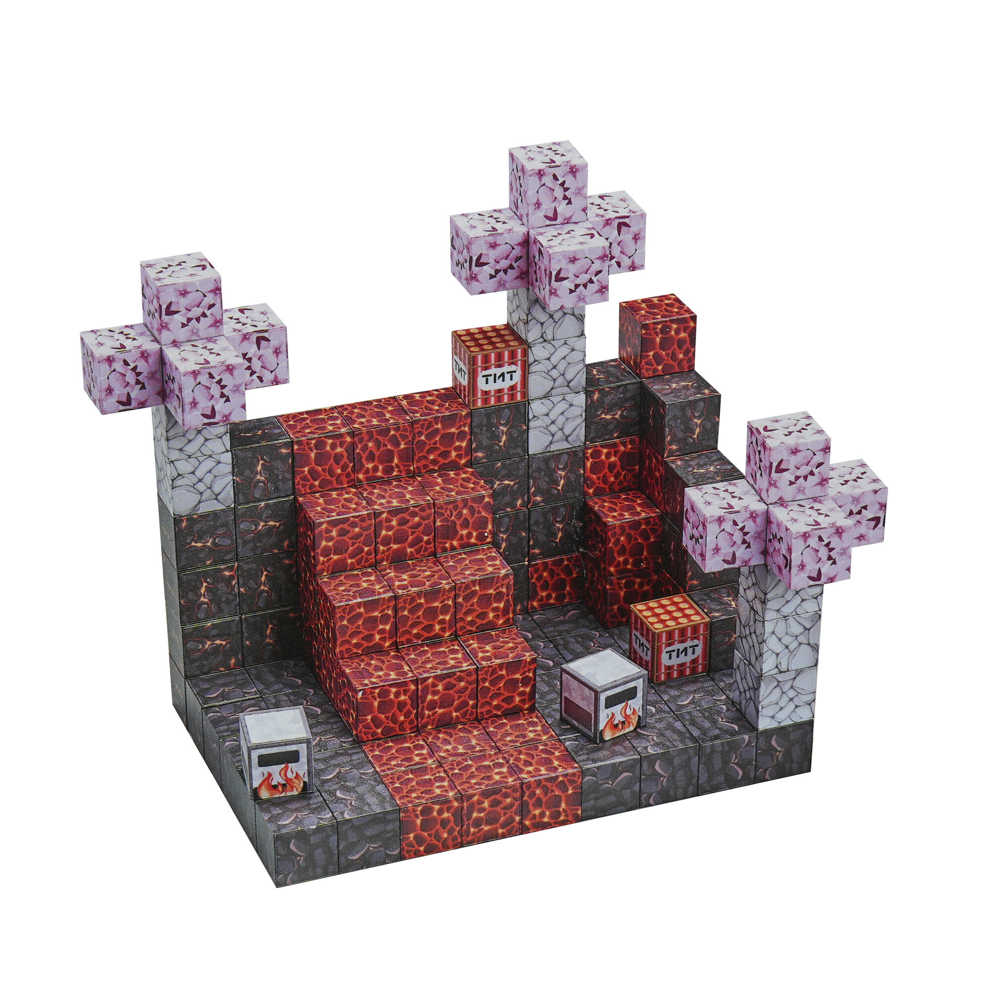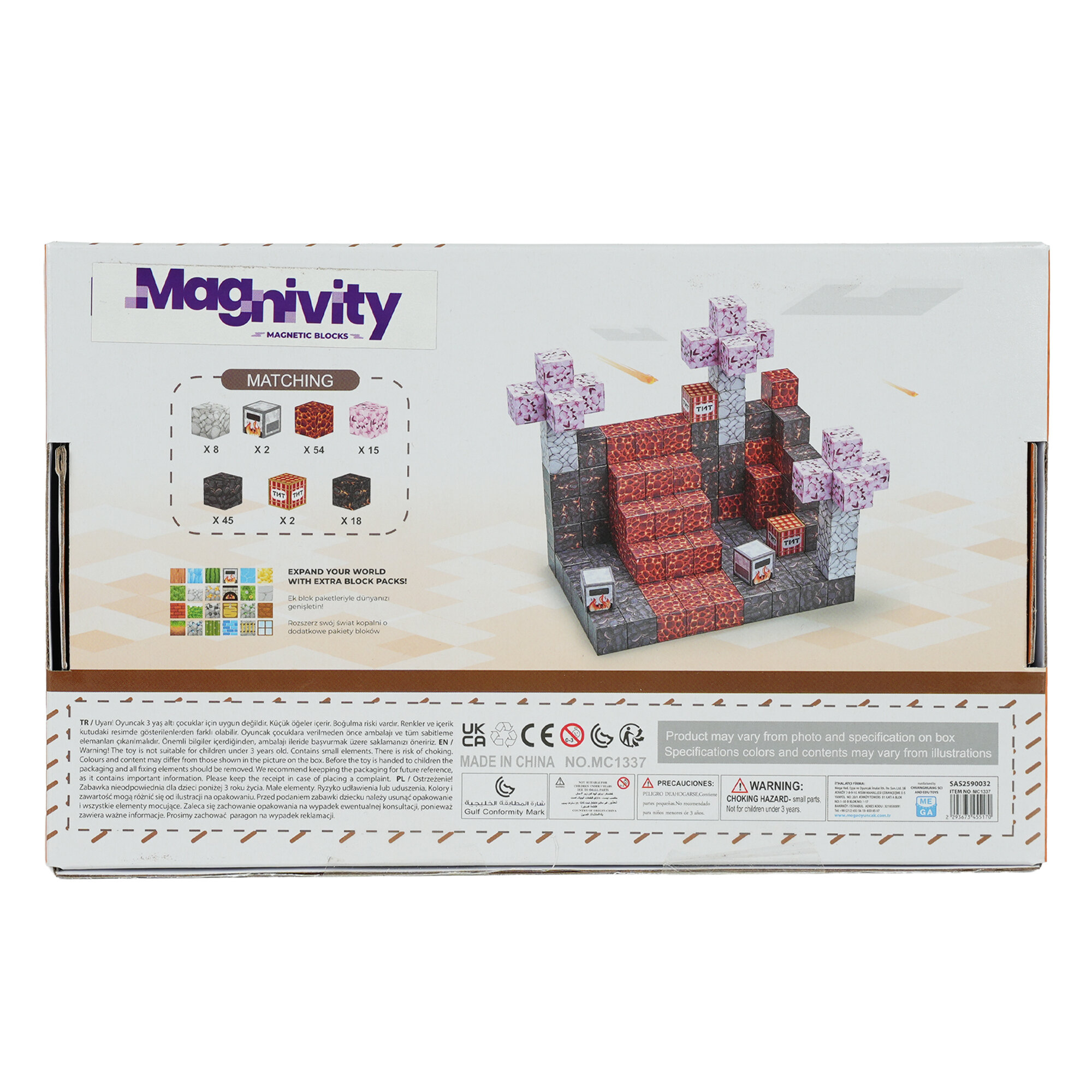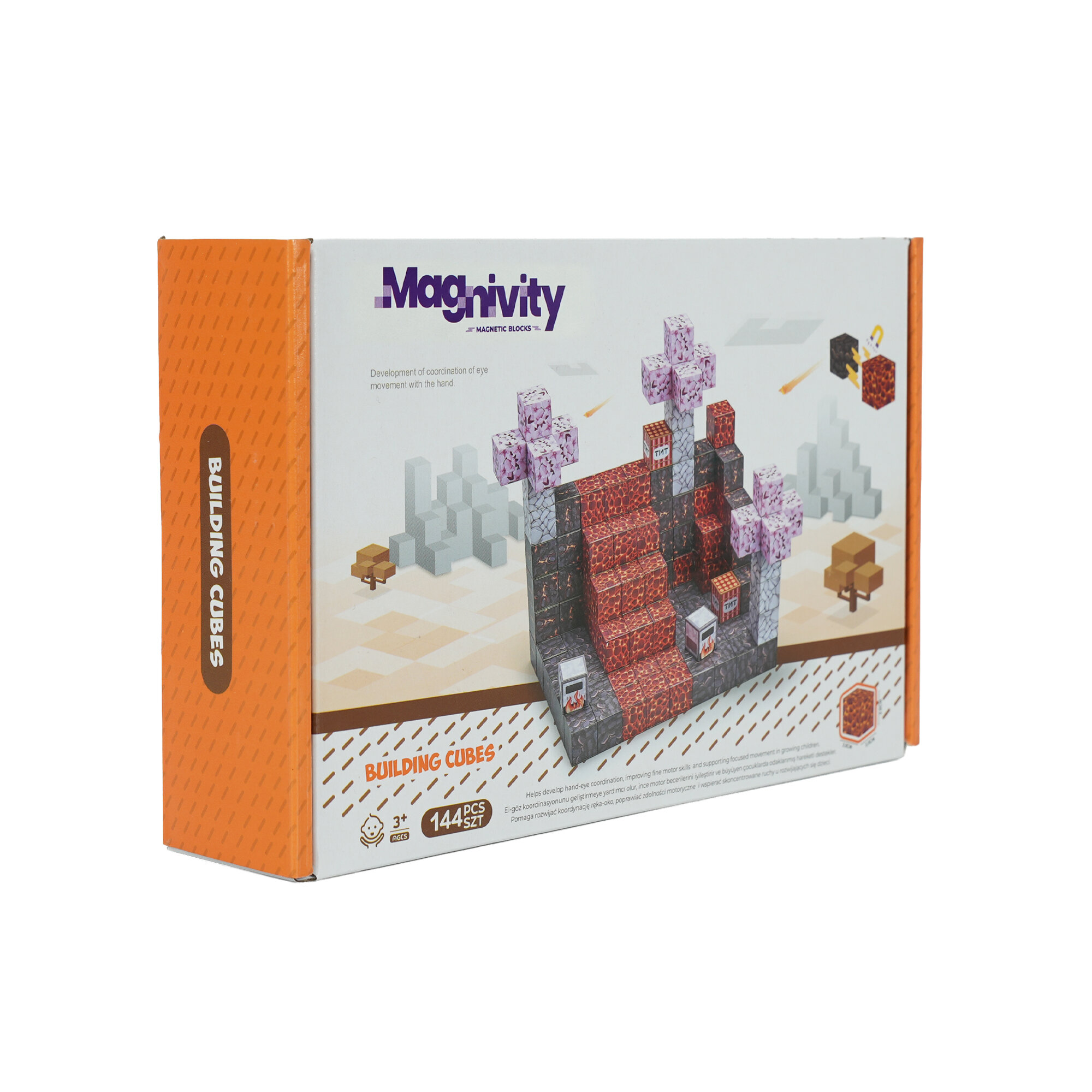 Manyetik blok tarzı tasarımıyla dikkat çeken bu set; lav blokları, buz detayları ve özel desenli küplerle sınırsız yapı kurma imkânı sağlar.