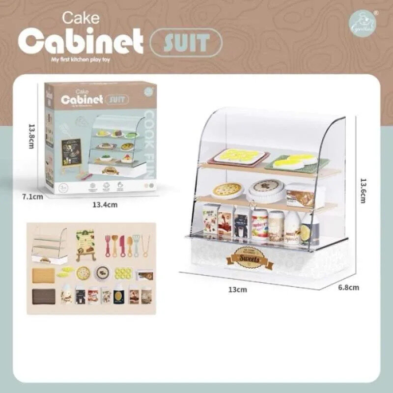 Bu mini pasta vitrini, küçük şefler ve bebek evi koleksiyonları için tasarlanmış 1:12 ölçekli detaylı bir dekoratif oyuncak setidir.