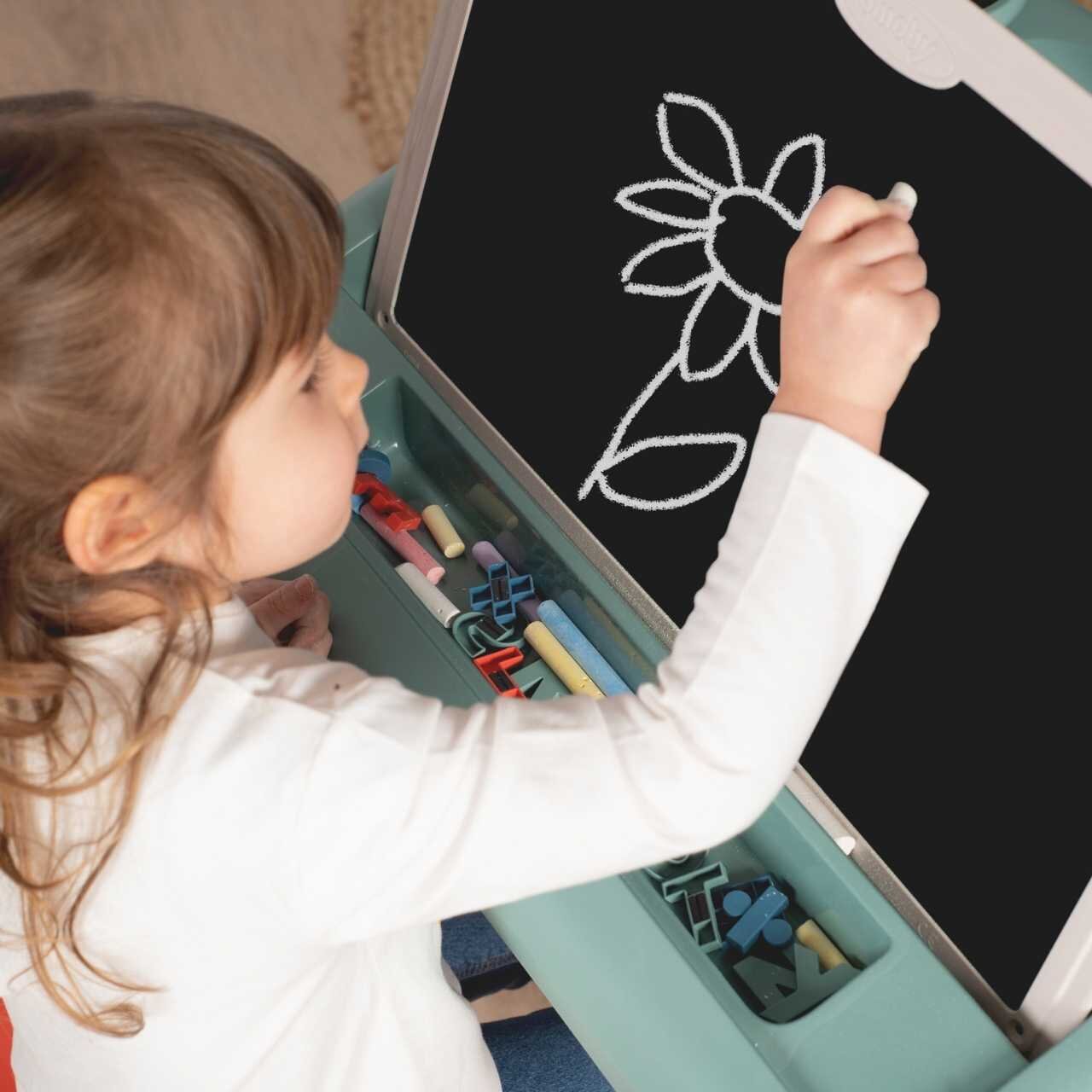 Smoby'nin küçük çalışma masası, meraklı okul öncesi çocuklar için tam aradıkları şey!