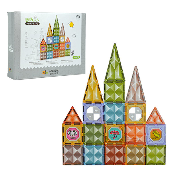 Rengârenk ve farklı geometrik şekillerden oluşan bu 31 parçalık set sayesinde çocuklar kendi kalelerini, evlerini ve diledikleri yapıları kolayca oluşturabilir.